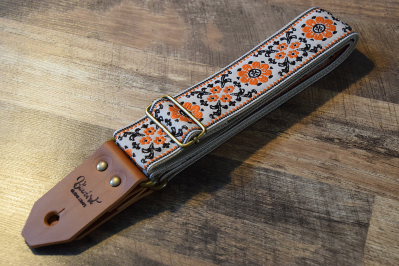 Woven from soft cotton yarn in subtle shades of Brown and Orange, this strap offers more than just good looks. The breathable fabric, paired with a Beige backing and premium Cognac leather ends, makes it a joy to wear during long sessions or soulful gigs. Its calm aesthetic pairs perfectly with both classic and modern guitars — whether you’re strumming acoustic rhythms or soaring through electric solos. This strap is all about balance: elegance and function, culture and sound, simplicity and soul.