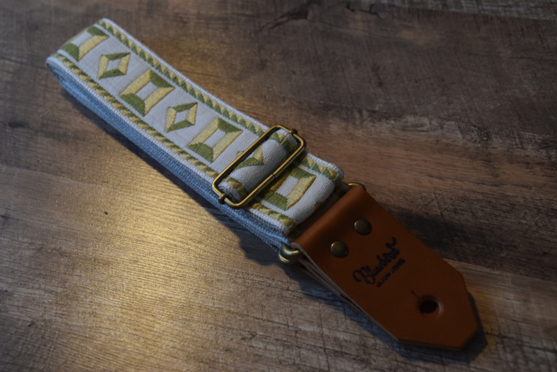 The Lime & Beige Osix strap combines modern minimalism with geometric sophistication. Its soft beige background sets the stage for repeating squares and diamonds detailed in vibrant lime and subtle beige threads, creating a fresh, lively contrast.