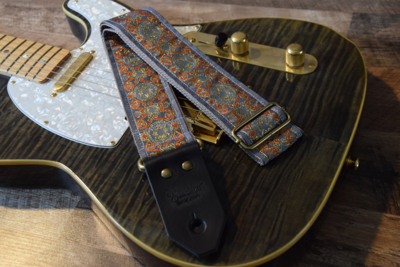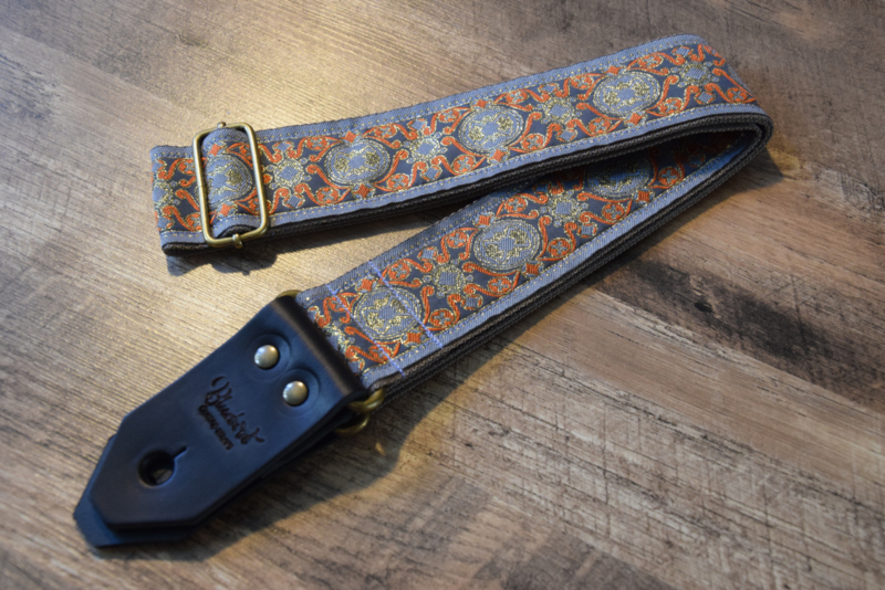 Bluebird guitar straps are: vintage guitar straps handmade in the Netherlands. Each strap is made of unique woven fabric from the '60 &'70 or modern contemporary trims, brass hardware and genuine leather.